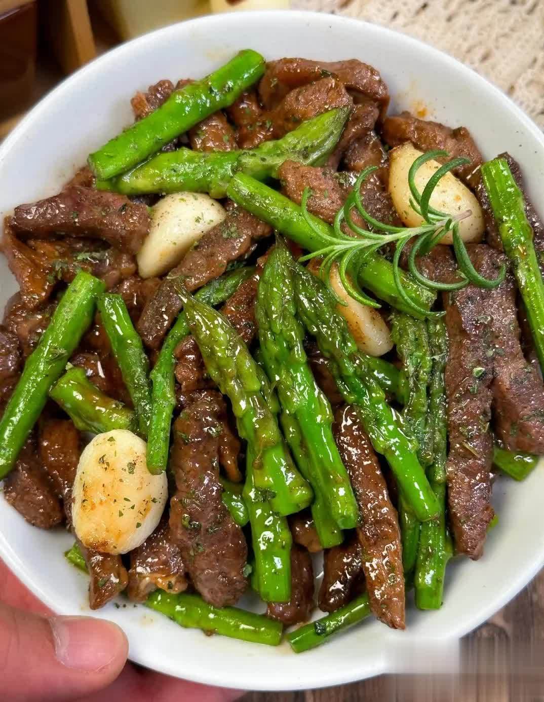 突然想到,之前我炒牛肉总爱加很多调料,结果把牛肉本身的香味盖没了,其实生抽和盐就够了,芦笋的鲜还能中和牛肉的腻,一口下去,牛肉嫩,芦笋脆,特别下饭。