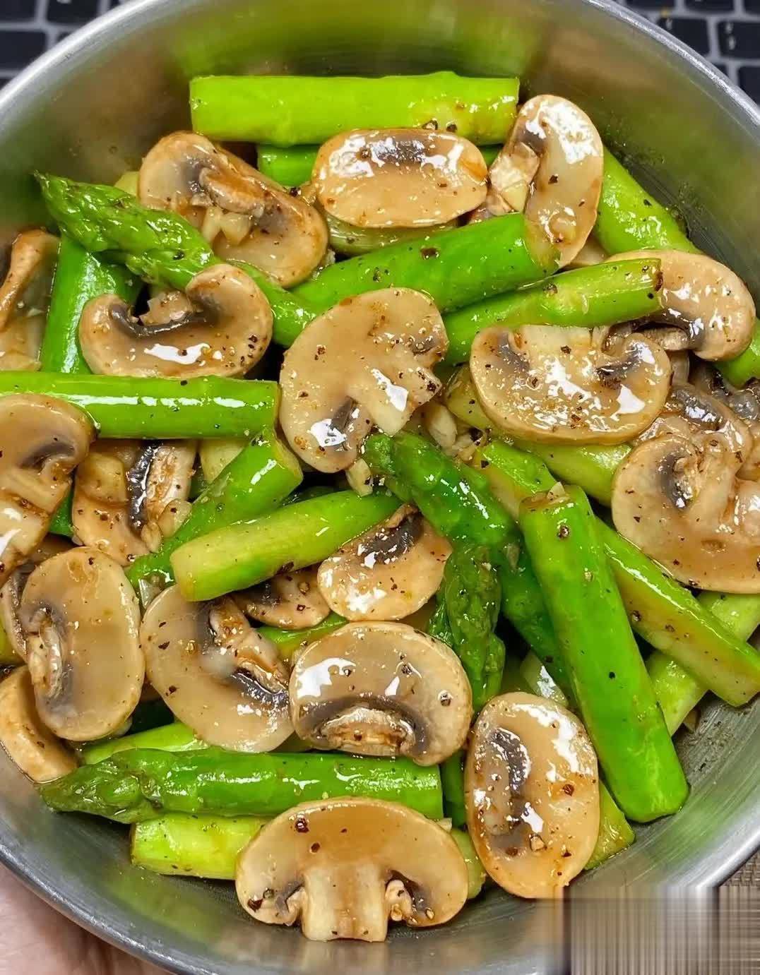 第三道菜:芦笋炒口蘑——清淡鲜爽,秋天吃着不腻
